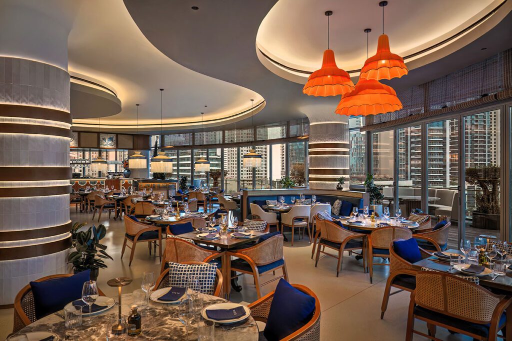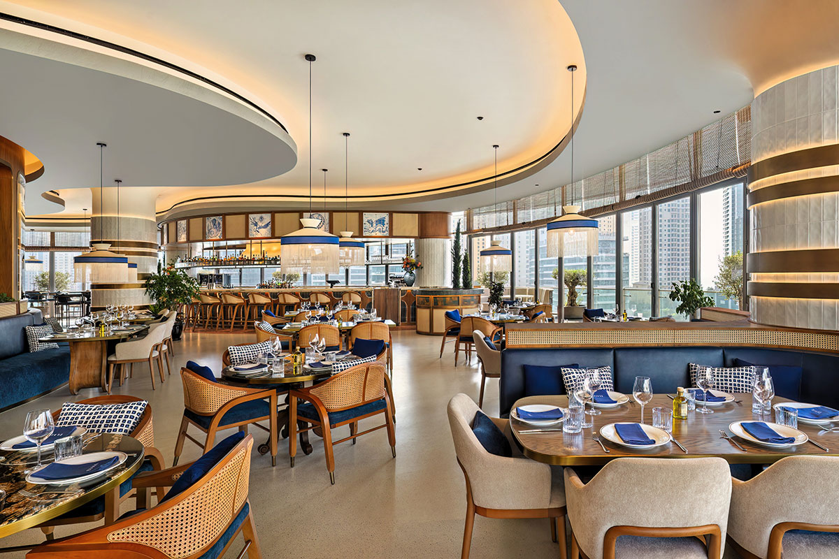 Elaia is a Mediterranean bistro at Pier 7, designed to capture the spirit of Greek hospitality with views over Dubai Marina.